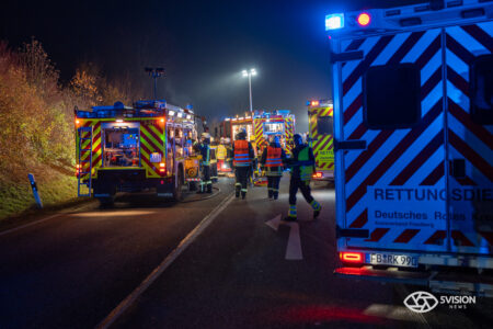 Die Feuerwehr sicherte die Unfallstelle ab, unterstützte den Rettungsdienst und die Polizei bei den Maßnahmen und leuchtete die Einsatzstelle für die Unfallaufnahme aus.