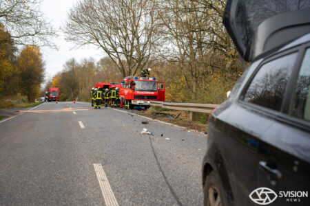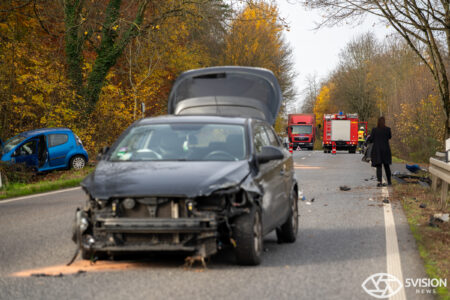 Die Feuerwehr nahm die auslaufenden Betriebsstoffe auf und stellte den Brandschutz sicher. Ebenfalls vor Ort waren Polizei und Rettungsdienst. Die verunfallten Fahrzeuge wurden anschließend durch einen Abschleppdienst abgeschleppt.