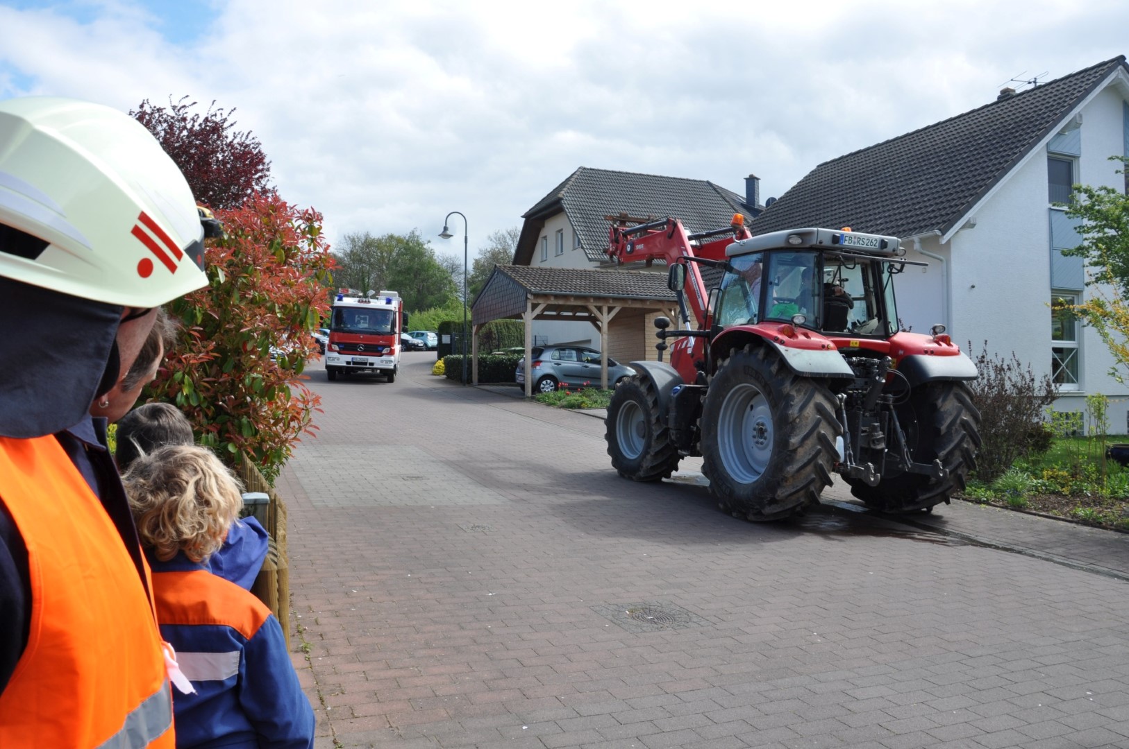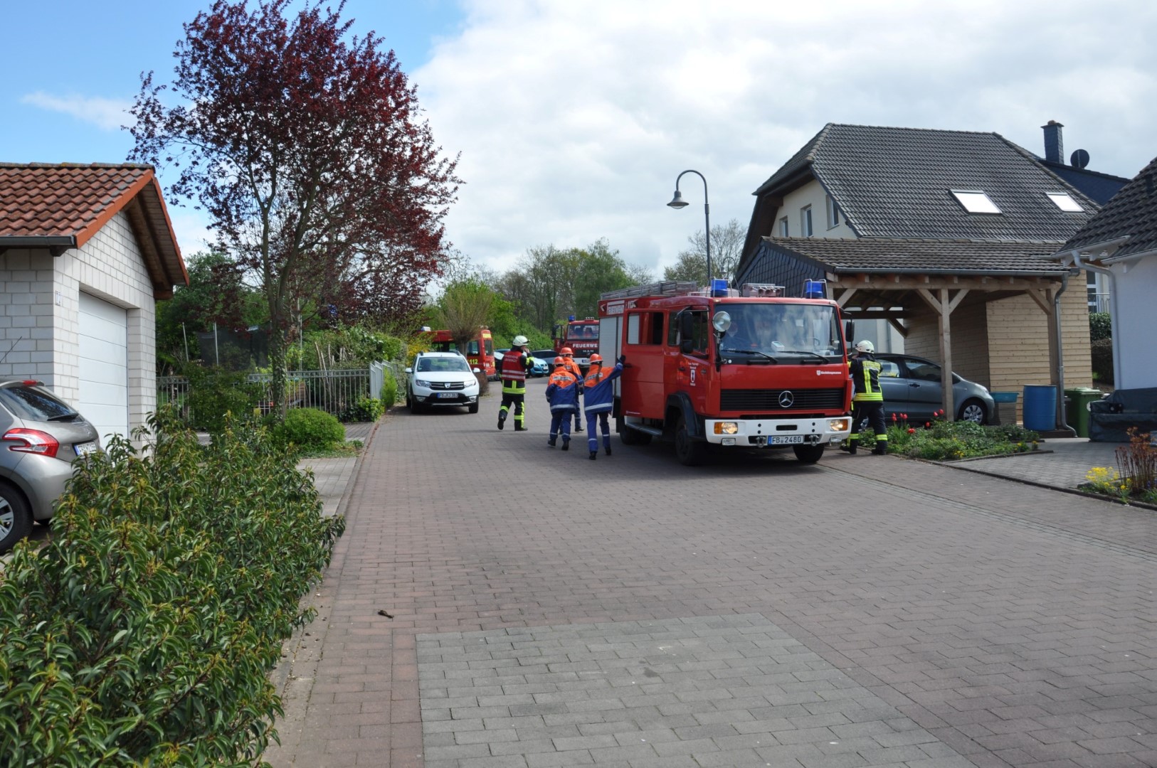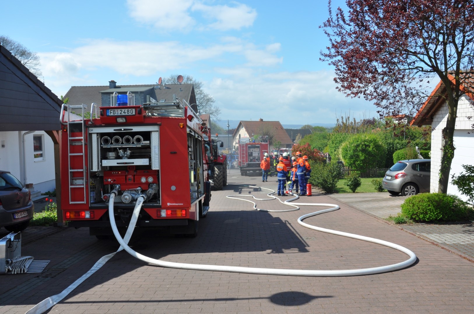 Beim Antreten am Schauplatz erläuterte der scheidende Stadtjugendwart Oliver Mandel die Situation und alle Abläufe. Die Bürgermeister Adrian Roskoni und Dr. Bernhard Hertel lobten die interkommunale Zusammenarbeit und den Einsatzeifer der Akteure. Zu begrüßen sei das große Interesse an der Feuerwehr: „Bleibt Eurer Feuerwehr treu!“ Der scheidende Stadtbrandinspektor Bernd Reiter schloss sich grüßend an und dankte dem Publikum. Alles sei „gut sortiert und ruhig“ vonstattengegangen.