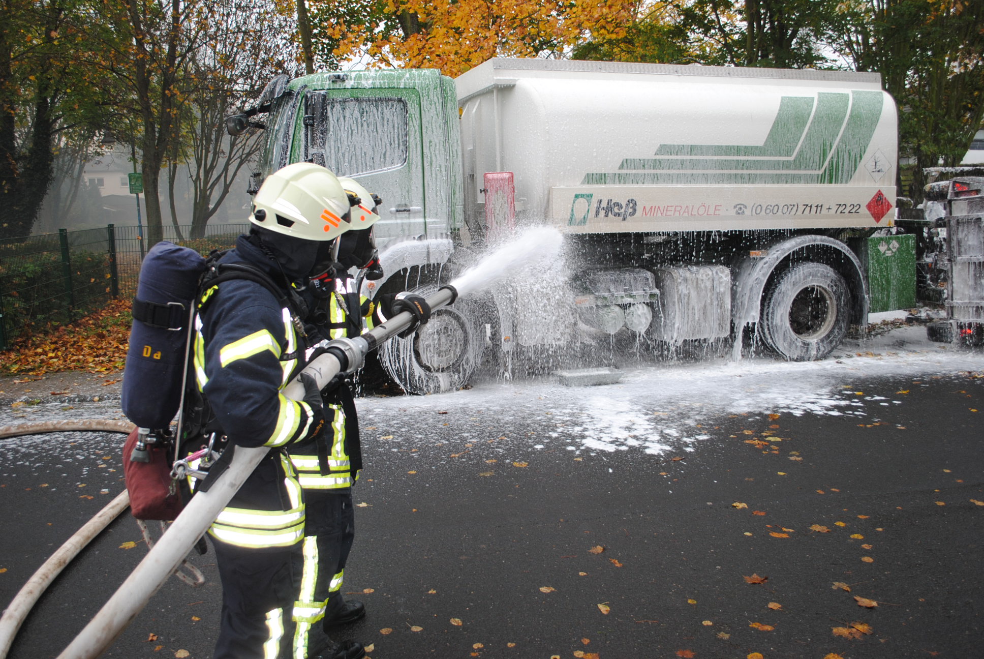 Niddatal-Ilbenstadt (udo). Sirenen heulten am Samstagnachmittag die Abschlussübung der Feuerwehr ein. Die angenommene Lage war, dass auf der Karbener Straße nahe dem Spielplatz ein Tanklastzug mit einem Trecker kollidiert war und dass Flüssigkeit aus dem Gefahrguttransporter drang. Drei Verletzte waren in Gefahr.