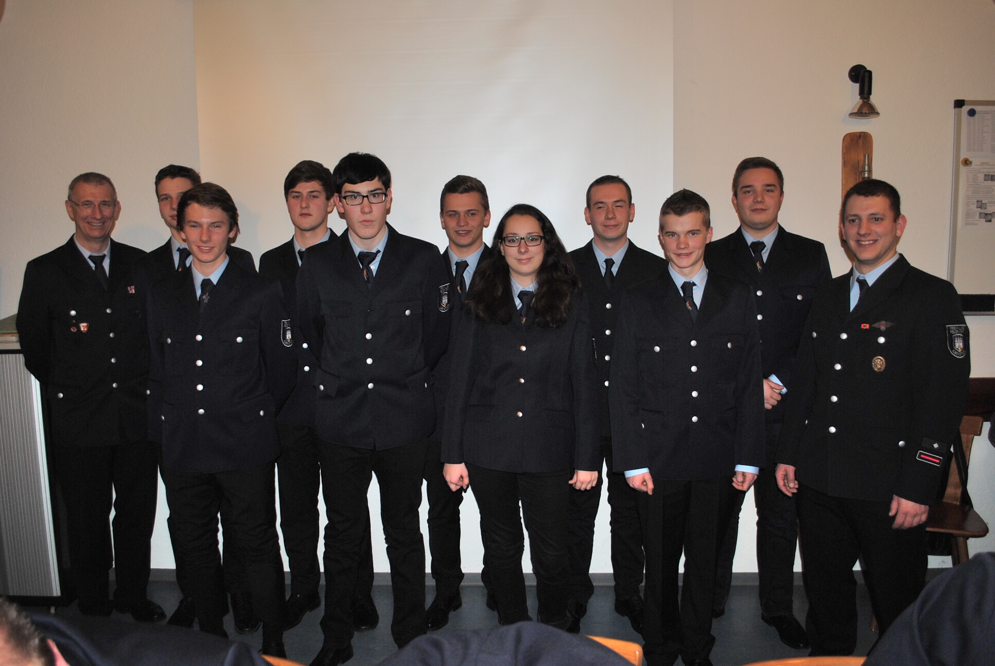 Freude kam auf, als mit Marc Werner, Tobias Wagner, Simon Schulmeier, Marcel Jonientz, Nicolas Haas, Alexander Hantl, Simon Bickel, Christina Kallinger, Tobias Stagel, Carola Brucker und Yvonne Grub gleich elf neue Aktive in der Einsatzabteilung begrüßt werden konnten. Acht davon wurden aus der Jugendabteilung übernommen. Michael Grub wurde zum Feuerwehrmann befördert, Markus Macker zum Hauptfeuerwehrmann, Sven Thur zum Löschmeister und Christian Behnken zum Oberlöschmeister.