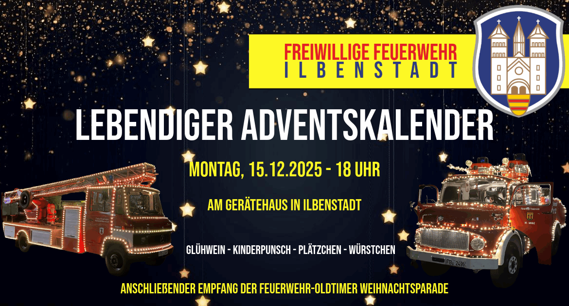 Ab 18:00 Uhr findet der “Lebendige Adventskalender” am Gerätehaus in Ilbenstadt statt.
